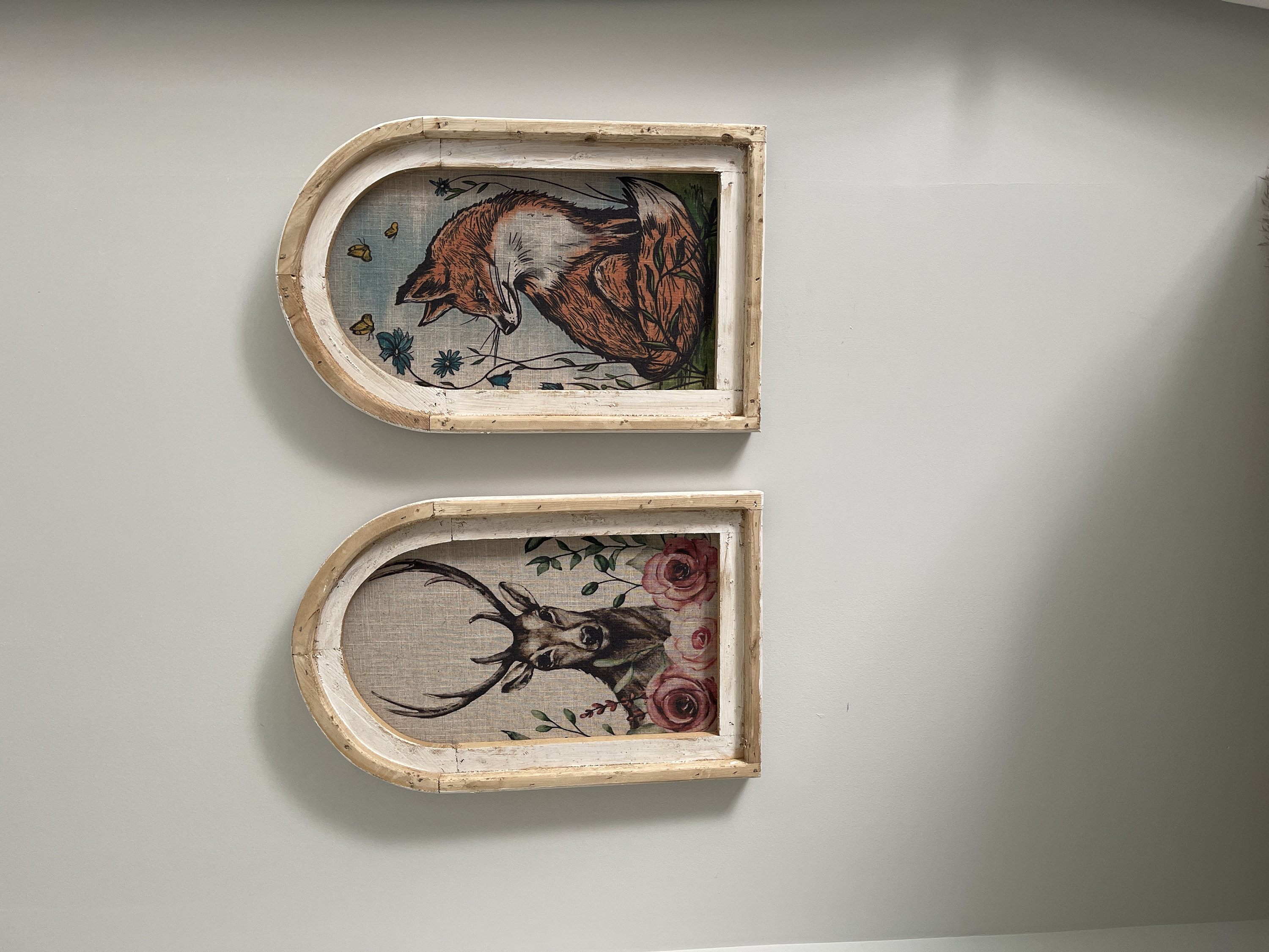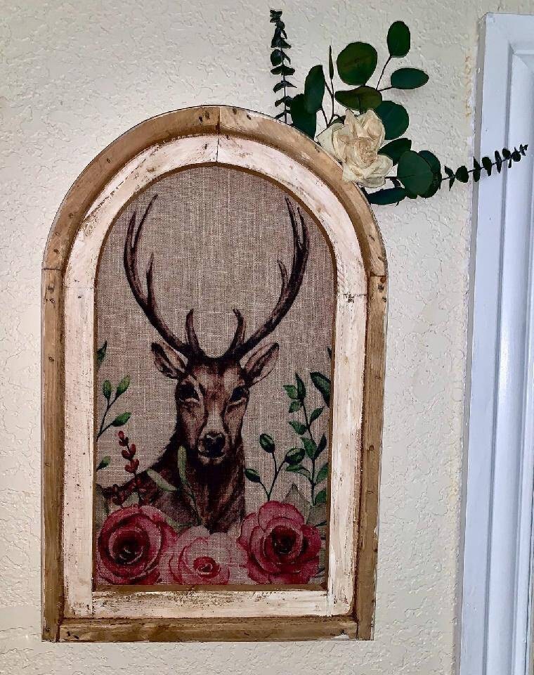The linen was carefully printed and framed in a reproduction arch window frame.
