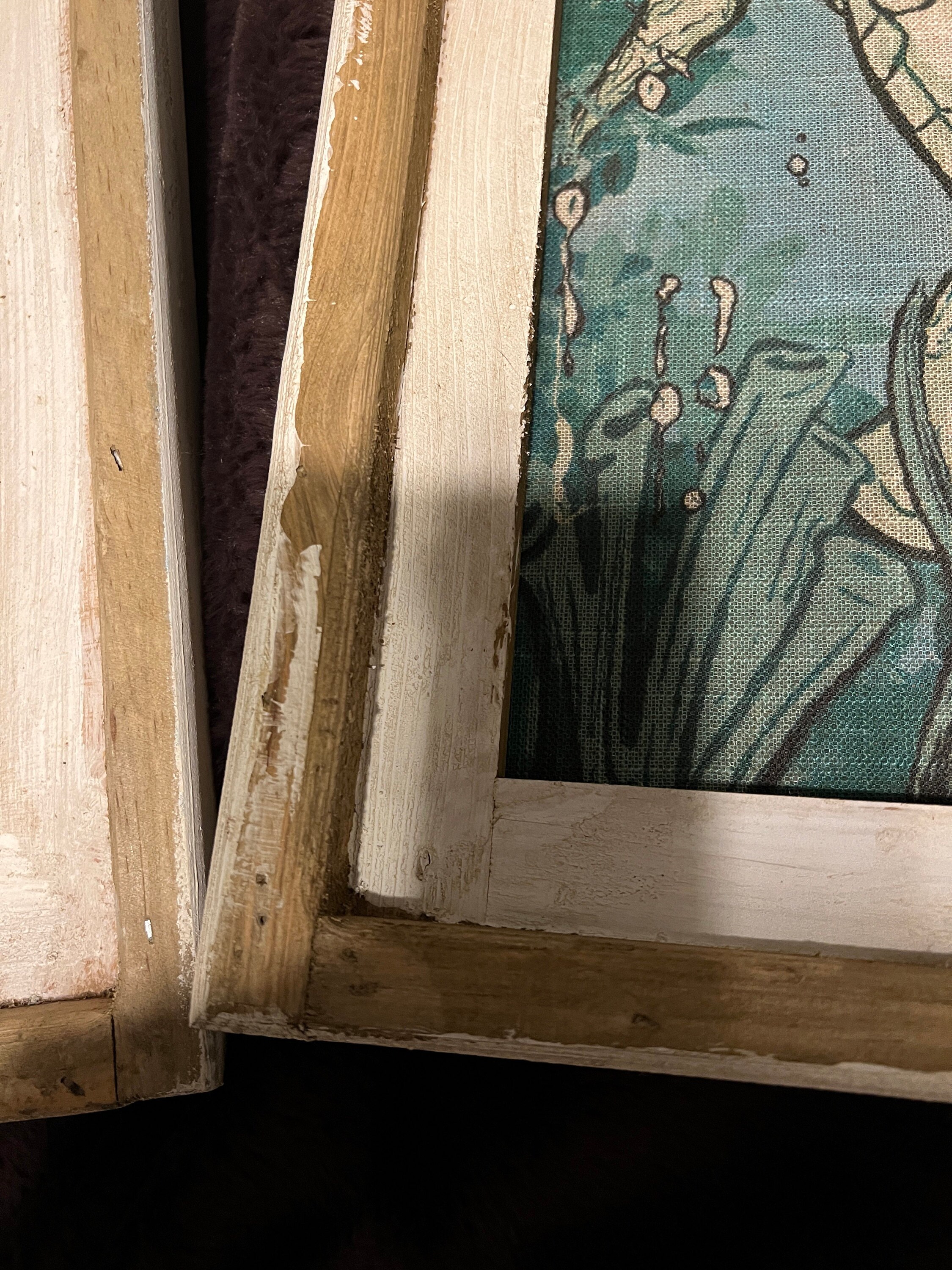The linen was carefully printed and framed in a reproduction arch window frame.