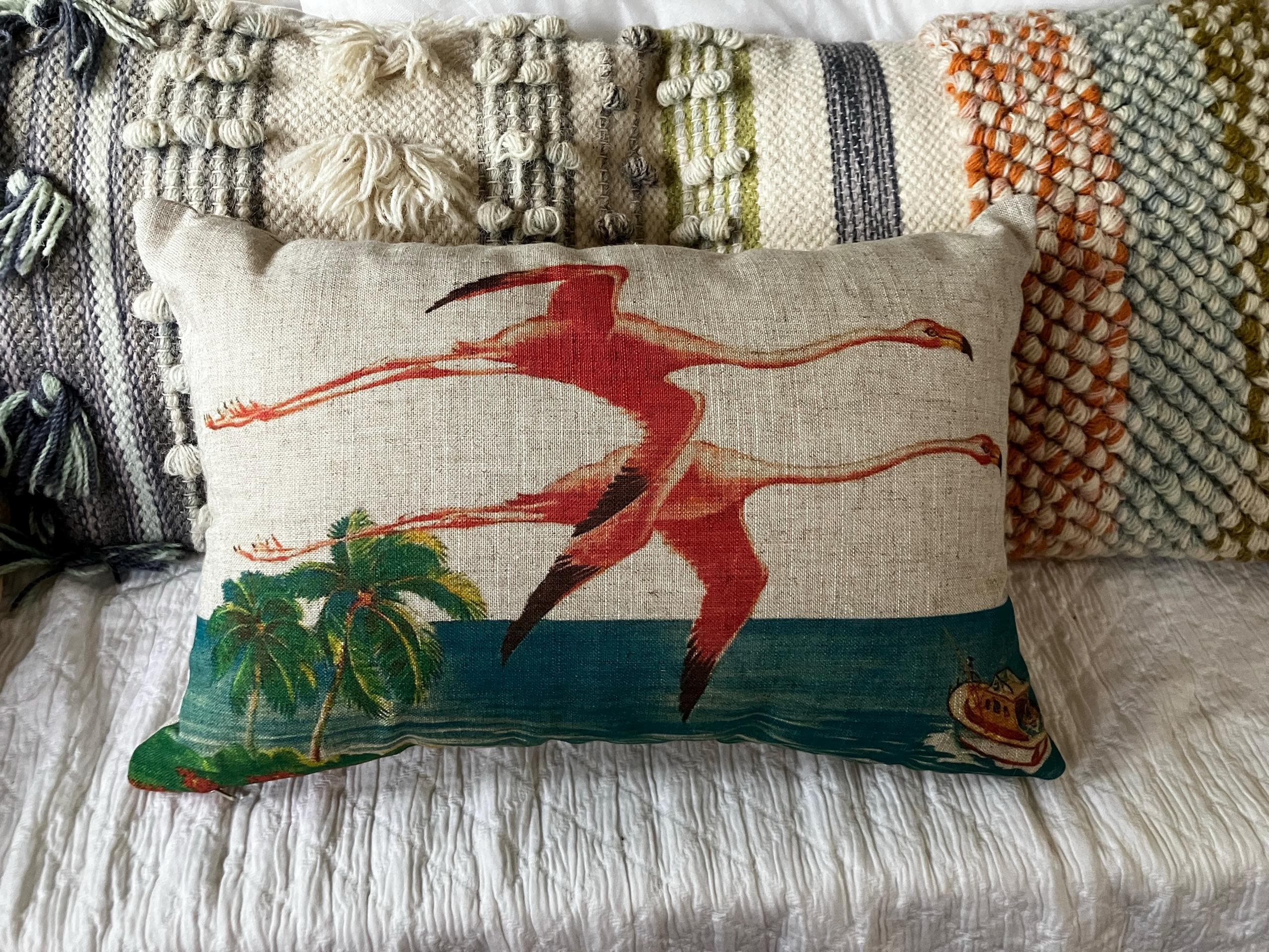 This lumbar pillow is handmade with a cotton/linen blend fabric. The fabric for this pillow is carefully printed in our studio located in Riverview, Florida.