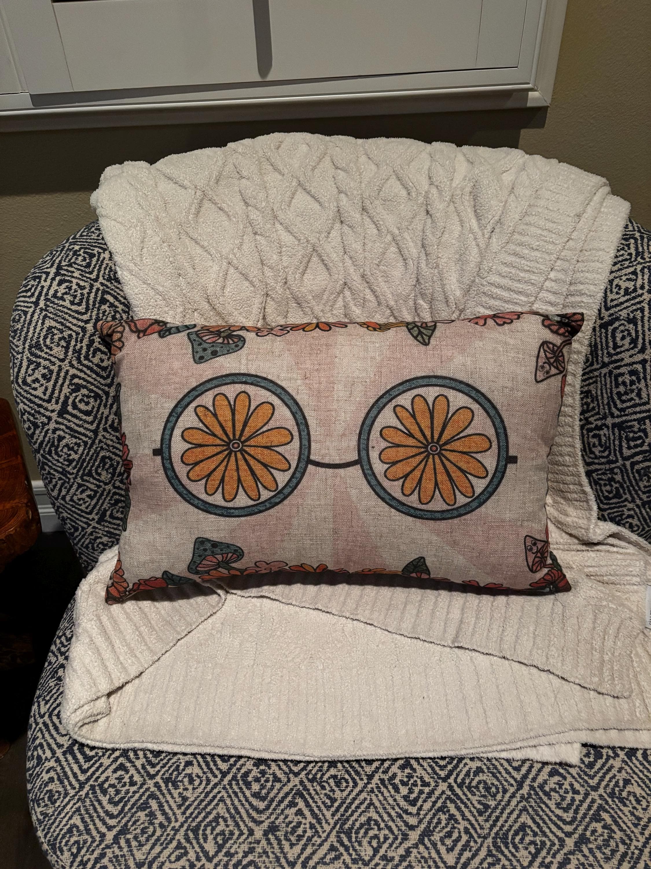 This lumbar pillow is handmade with a cotton/linen blend fabric. The fabric for this pillow is carefully printed in our studio located in Riverview, Florida.