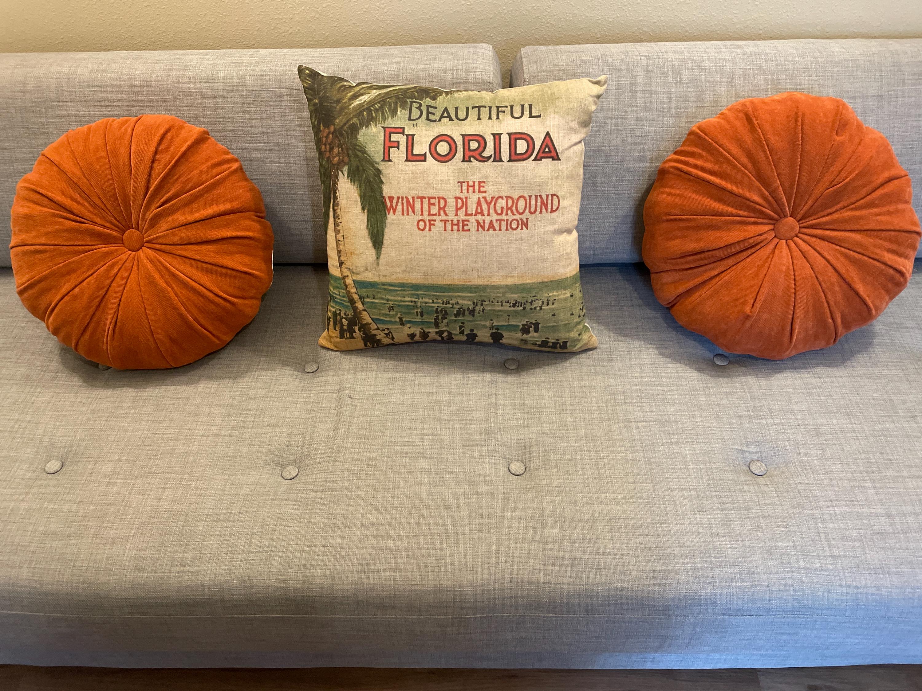 This pillow is handmade with cotton/linen blend fabric. The fabric for this pillow is carefully printed in our studio located in Riverview, Florida.