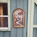 The linen was carefully printed and framed in a reproduction arch window frame.