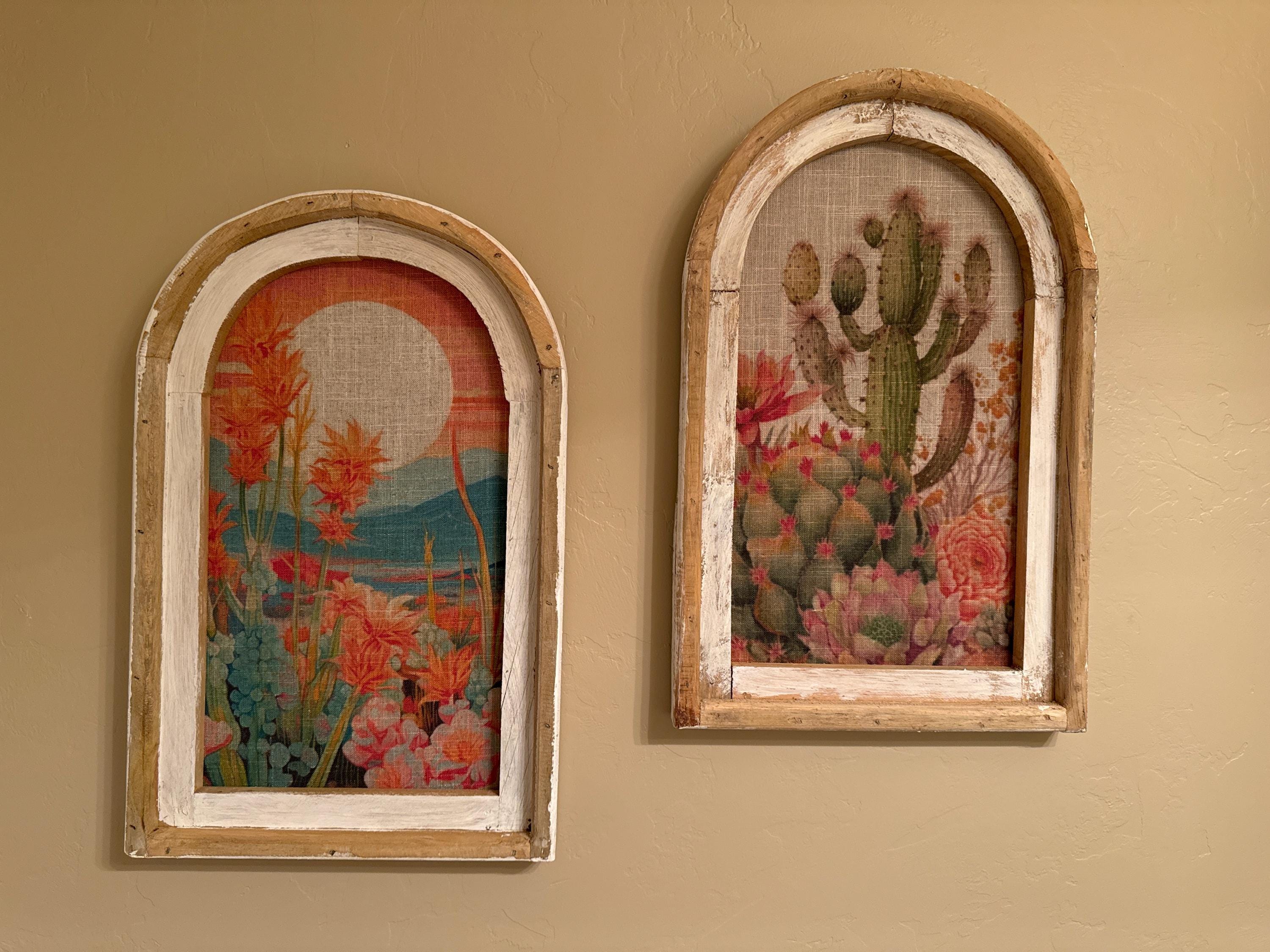 Western Landscape Wall Art | 14" x 22" | Arch Window Frame | Bohemian Wall Hanging | Eclectic Decor | Cactus Decor