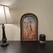 The linen was carefully printed and framed in a reproduction arch window frame.