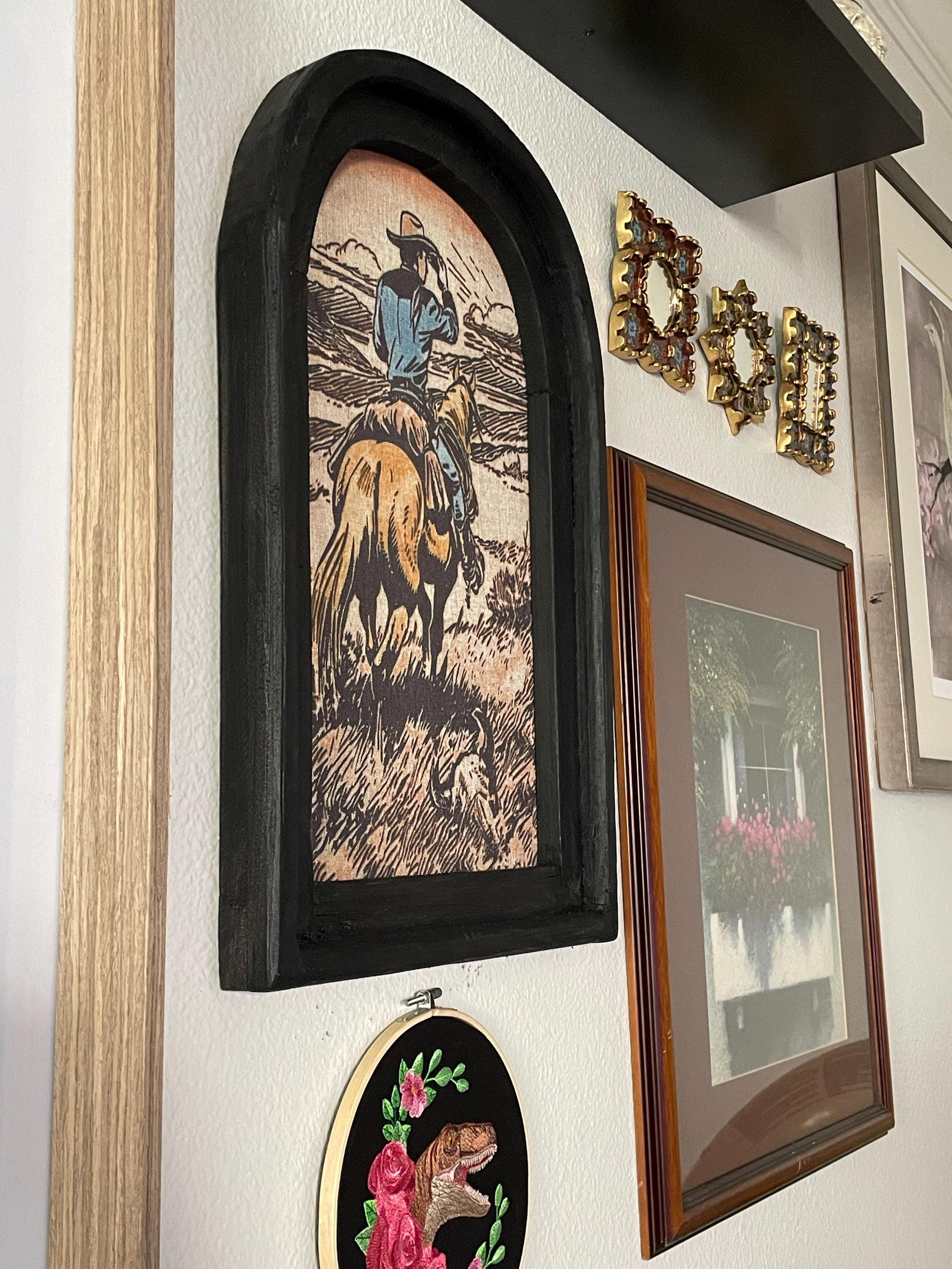 The linen was carefully printed and framed in a reproduction arch window frame.
