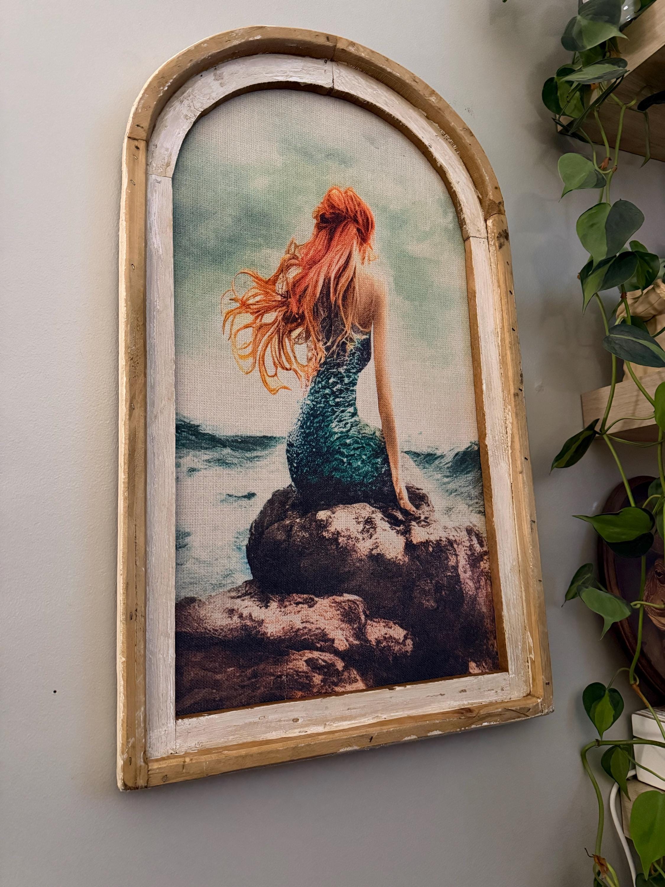 The linen fabric was carefully printed and framed in a reproduction window frame.
