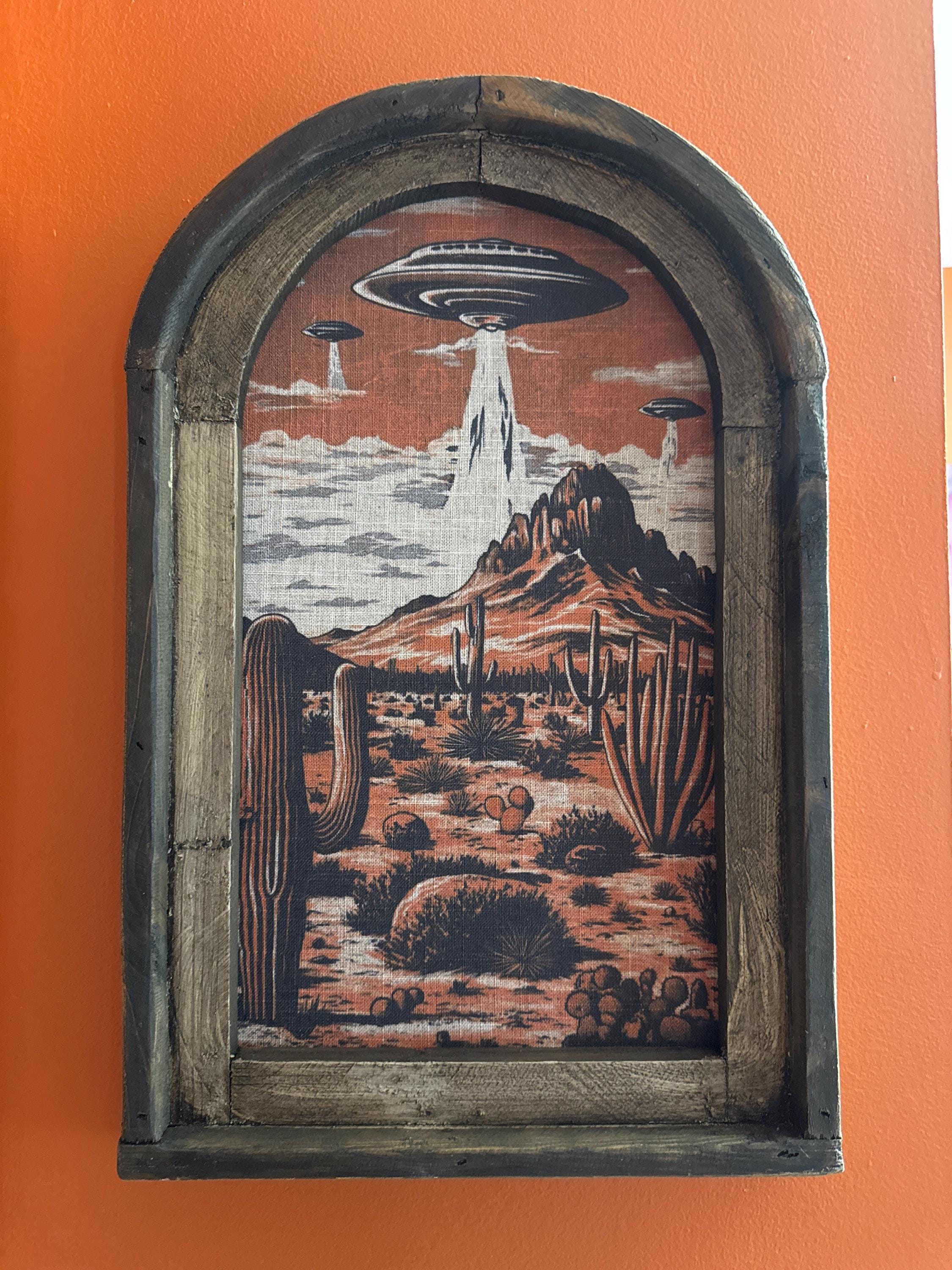 The linen was carefully printed and framed in a reproduction arch window frame.