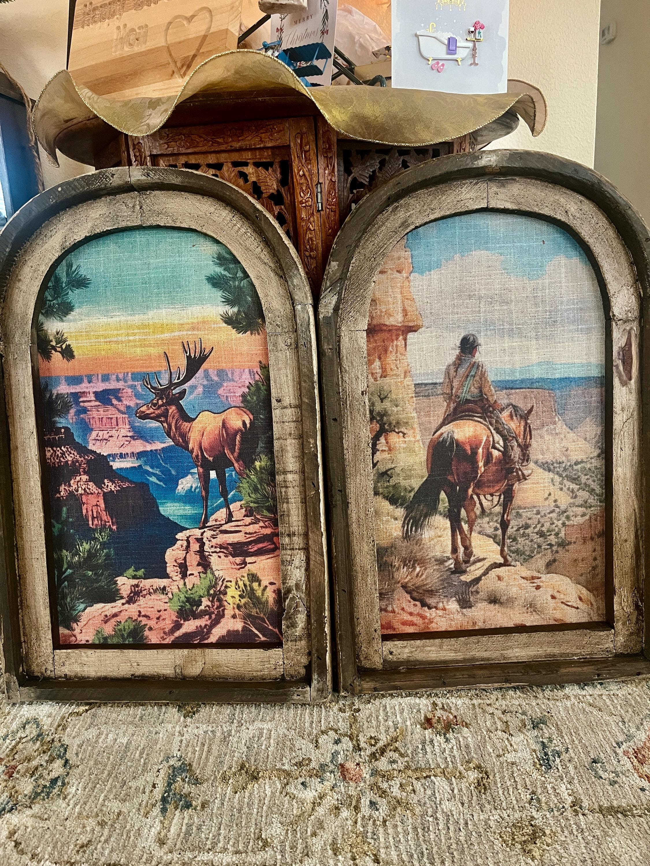 The linen was carefully printed and framed in a reproduction arch window frame.