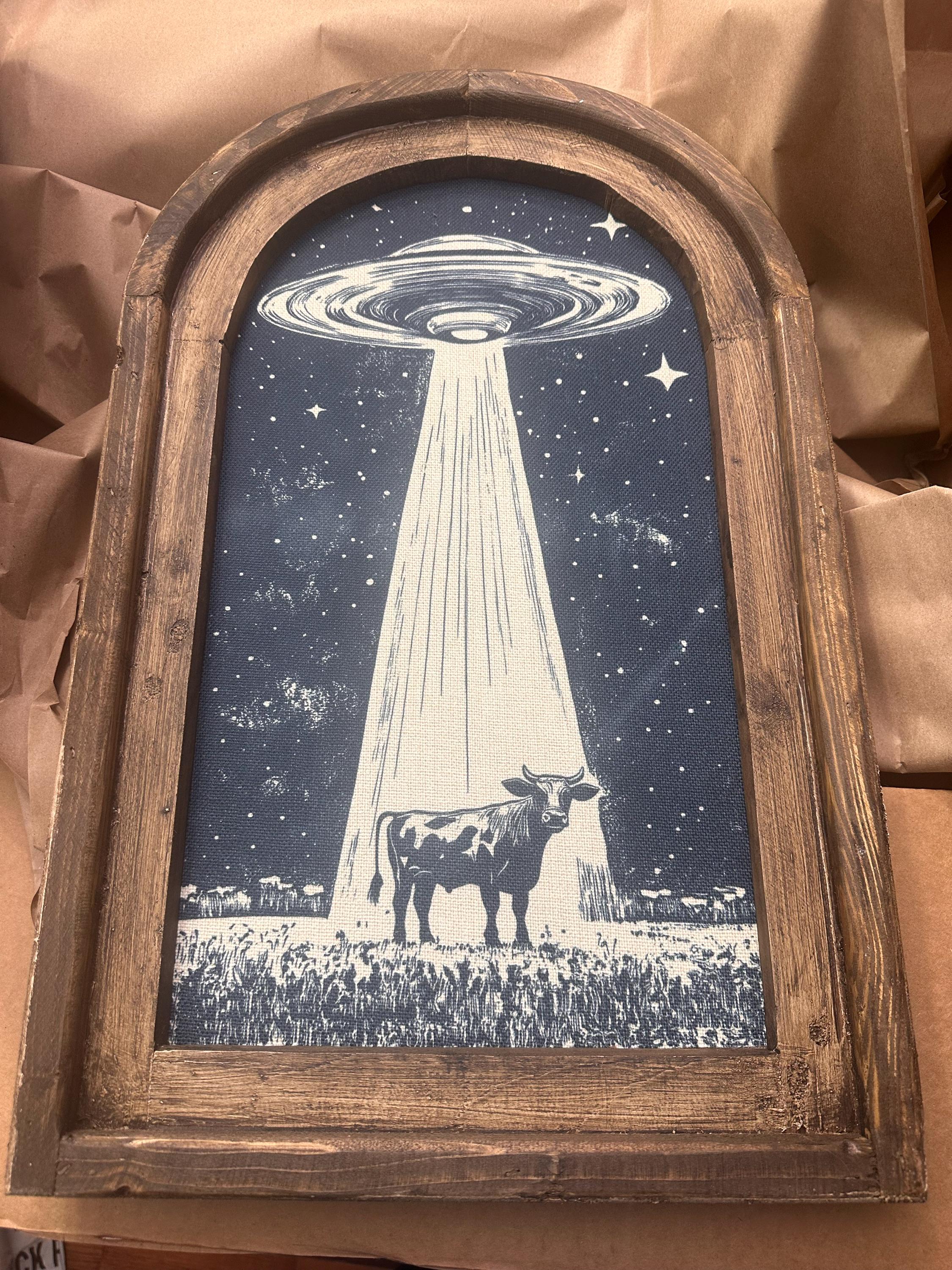 The linen was carefully printed and framed in a reproduction arch window frame.