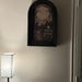 The linen was carefully printed and framed in a reproduction arch window frame.