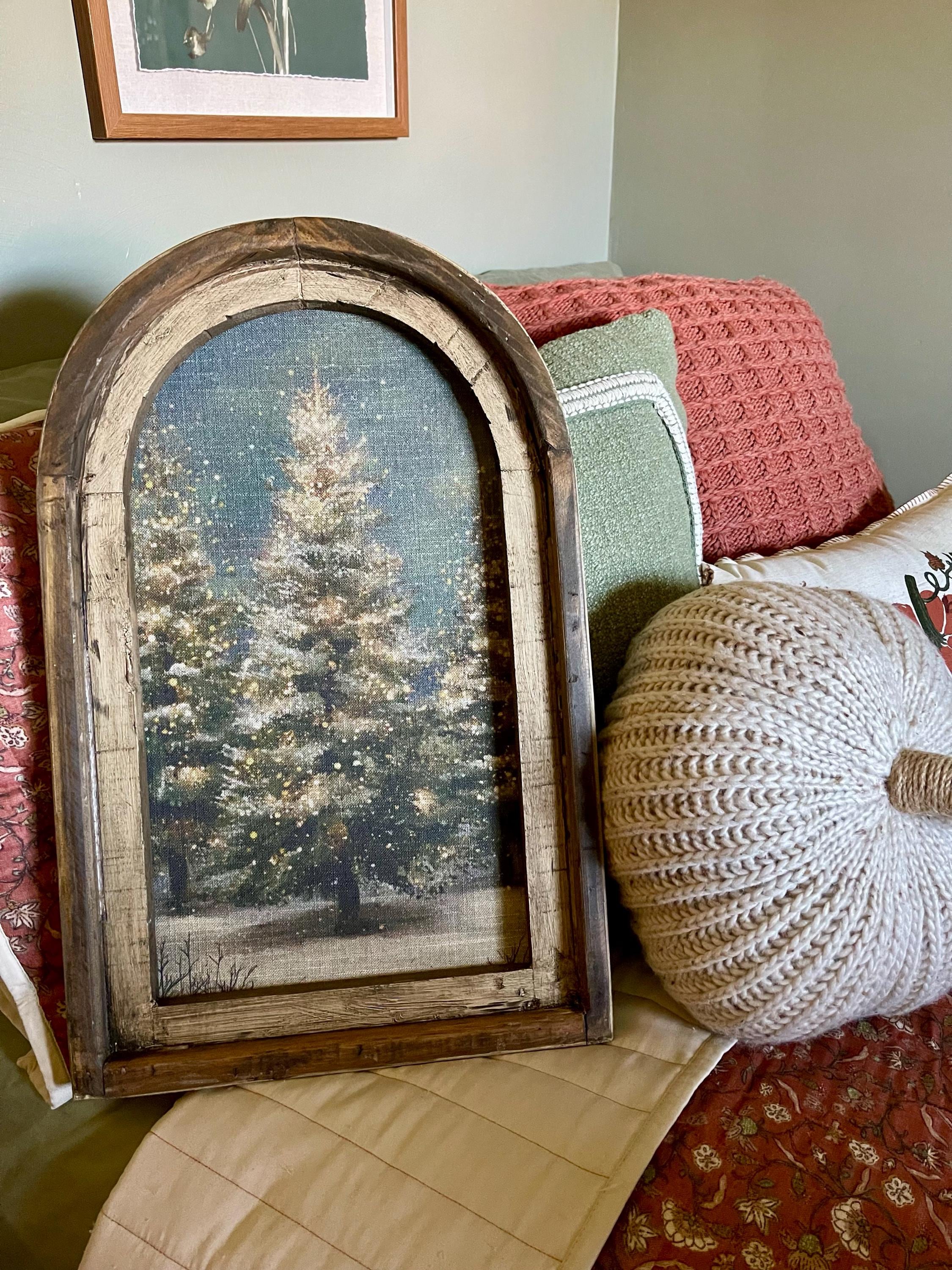 The linen was carefully printed and framed in a reproduction arch window frame.